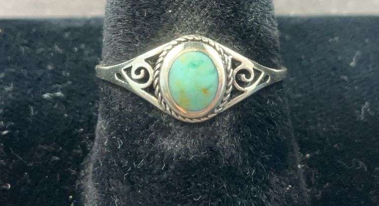 LOT 685 - Sterling silver turquoise shell ring 1.05g size 7