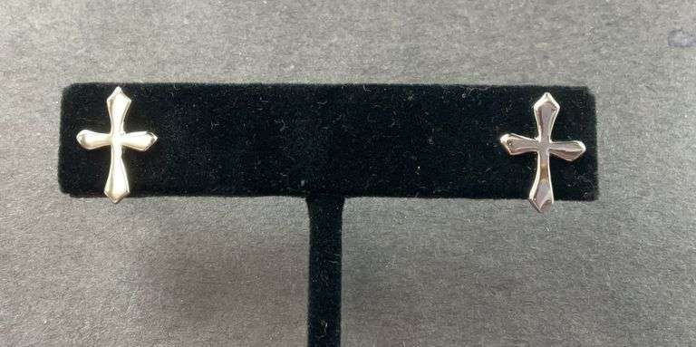 LOT 679 - Sterling silver cross stud earrings 1.26g