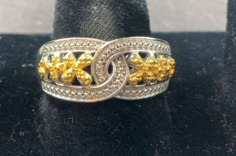 LOT 678 - Size 10 Diamond accent 18k gold plated platinum bond link ring