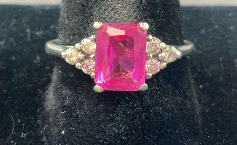 LOT 734 - Pink CZ Ring 3.3 grams Sterling Silver size 9