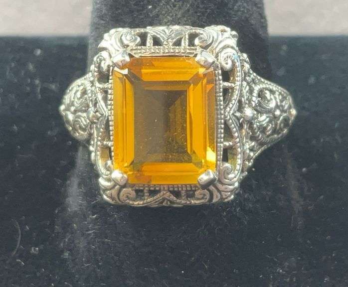 LOT 731 - Filigree Citrine Ring 4.6 grams Sterling Silver size 9