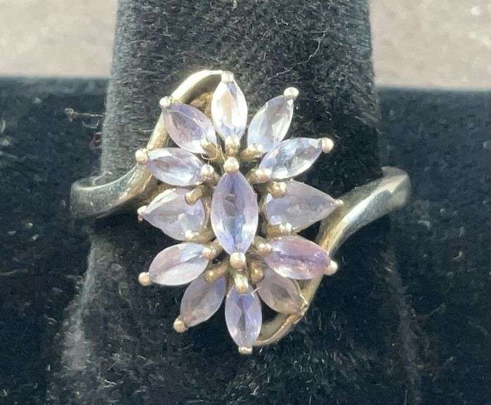LOT 720 - Tanzanite Cluster Ring 3 grams Sterling Silver size 8