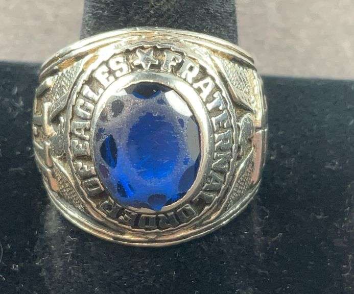 LOT 714 - Fraternal Order of Eagles Ring 17.4 grams Sterling Silver size 9.75