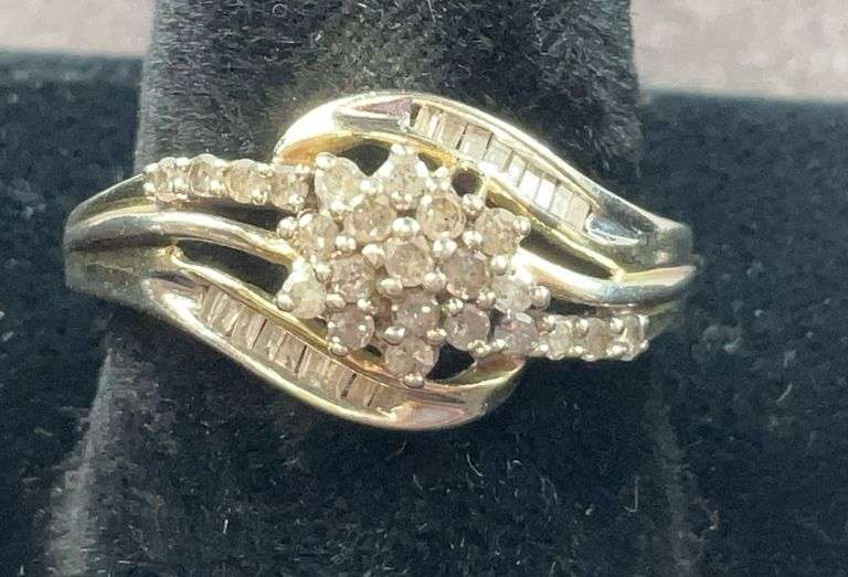 LOT 712 - Genuine Diamond Cluster Ring 3 grams Sterling Silver size 7, one stone missing