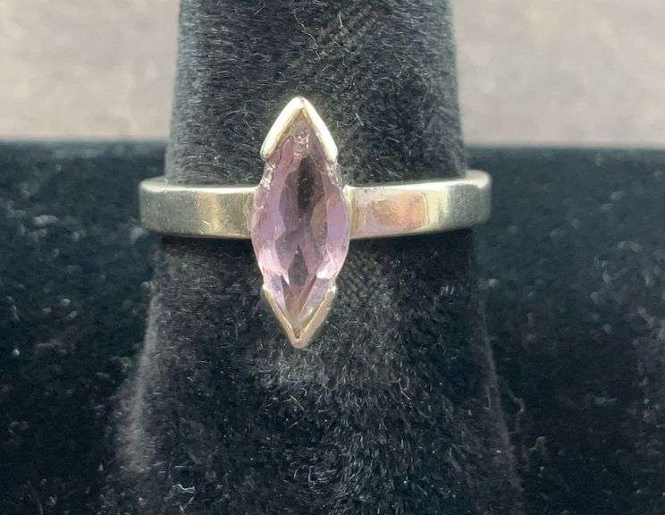 LOT 711 - Marquise Cut Amethyst Ring 3.4 grams Sterling Silver size 5.75