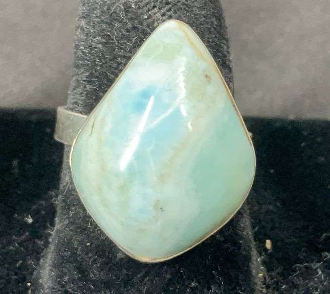 LOT 620 - Sterling silver Larimar stone ring size 5.75