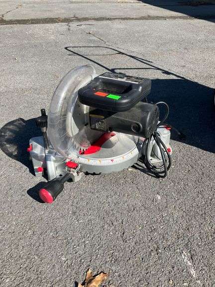 10-inch laser compound miter saw with a heavy-duty universal motor. Powered by 120V, 60-Hz, 15 Amps, and operates at 4800 RPM (no-load speed). Features double insulation, a clear safety guard, and an ergonomic top handle. Model No. 137.212310. The item is in operating condition.