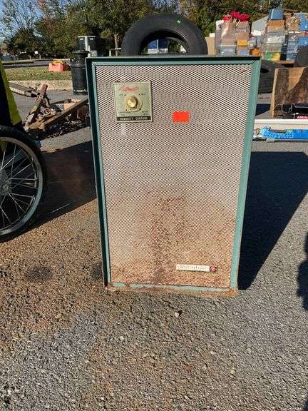 Westinghouse Custom Deluxe Dehumidifier featuring a front humidity control dial with settings for 'Off,' 'Dry,' 'Continuous Run,' and 'Extra Dry.' Includes visible coiled copper tubing and a collection reservoir at the back. Exterior casing shows a perforated metal design. This item is non tested by Hash Auctions.