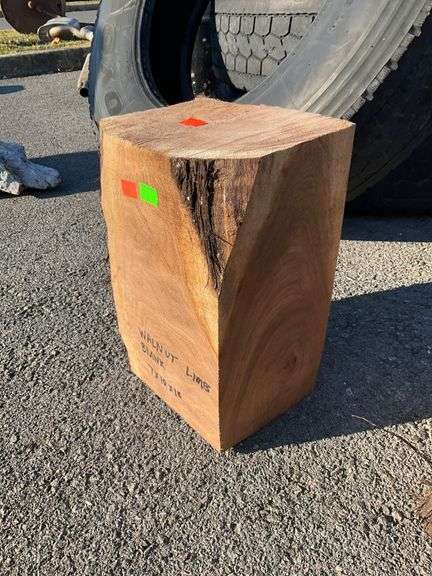 Walnut limb blank measuring 7 inches by 10 inches by 15 inches. Shows natural wood grain patterns with irregular edges. Cut and prepared for use in projects requiring walnut wood.