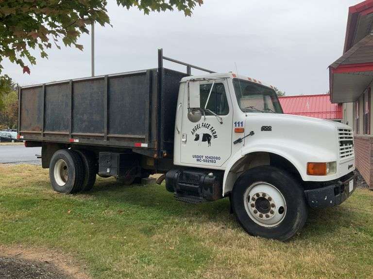 1996 International Truck 4700 DT 466, with 16-foot Dump Bed, Steel Bed with removable Steel stake side Dump bed with Barn Door style rear, the steel sides are 4Foot in height, they are 8 foot length sections, 5- under bed ratchet straps in sliding track, 6-Plus Manual Transmission, milage shown reads 489,479.This is what is shown no other variations other than that. Wheel Base 254”. Three person cab seating, GVWR is 26,000. Pounds. Vin #1HTSCAAM7TH315314. Clear West Virginia Title in Hand. Truck has recently new Batteries, the hydraulic Dump bed cylinder does leak please read and understand as it is leaking, but is working, Runs and Drives as it was Driven to us here at Hash Auctions. One only ignition key. Seller told us he just purchased another truck and is no longer using this in his daily operations. Truck could use new tires, yet here is a dump bed truck that should work for various Estate property, Farm, and other like Operations. Plan to stop by Hash Auctions and Inspect this one for yourself or have a representative inspect for you as we are as always selling as is. Information derived in good faith from the seller, and what is seen by Hash Auctions. Cash Payment with get title released at time of payment. All other forms of payment will require a what to clear time for title release.