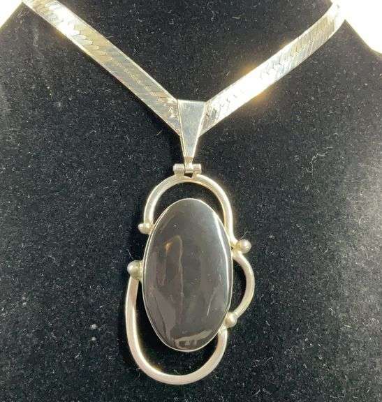 LOT 609 - “Amparo” Sterling silver Mexico black stone necklace 24in , 40grams