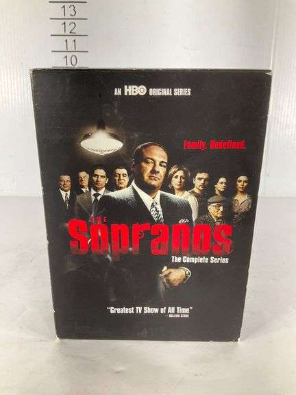 DVD box set of ‘The Sopranos: The Complete Series,’ featuring all seasons of the HBO original series in two cases. Includes over four hours of bonus features such as interviews, audio commentaries, and behind-the-scenes details.