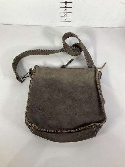 Antik Kraft crossbody bag in brown, featuring a braided strap and zippered side pockets. Includes an external zipped pocket on the back and a patterned fabric-lined interior with an internal zippered compartment. Made of durable material with decorative stitching.