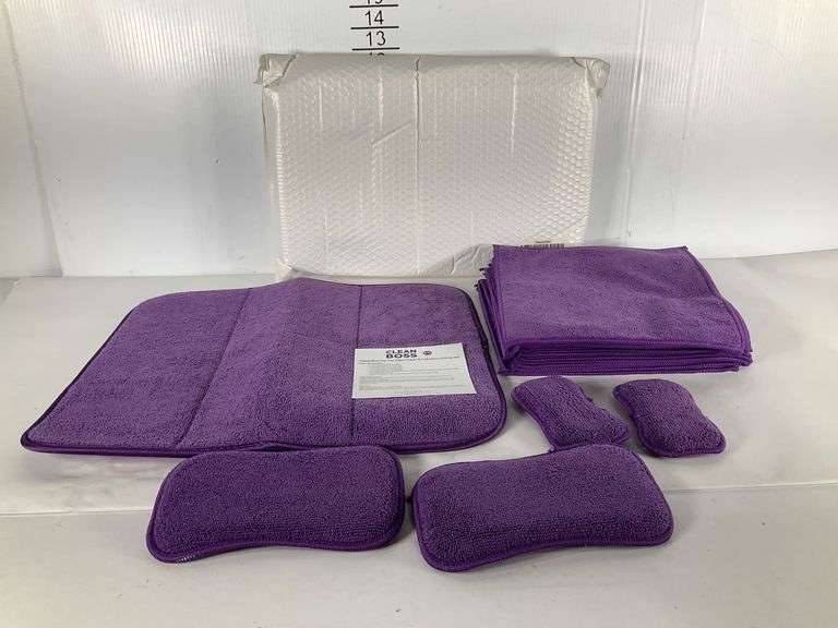 25-piece cleaning set by CleanBoss featuring purple microfiber cloths, scrubber sponges, and drying rack mat. Includes eco-friendly cleaning tools and allergen-reducing.