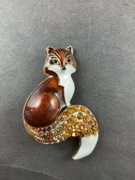 LOT 662 - Multi color rhinestone and enamel goldtone brown fox brooch