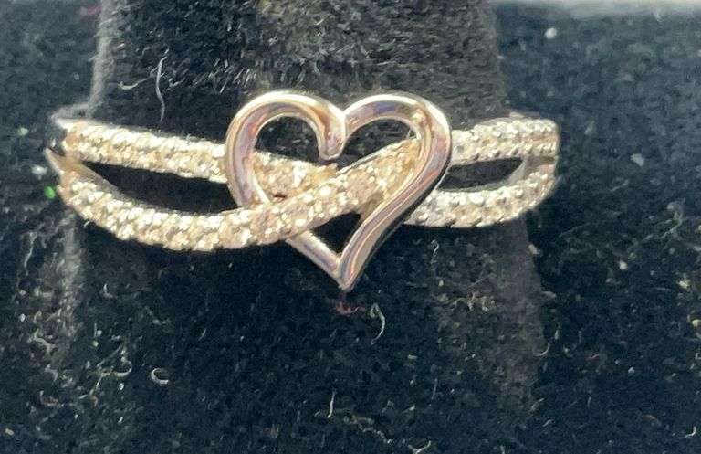 LOT 665 - Sterling silver CZ infinity twist heart ring size 11