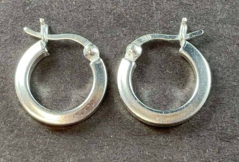 LOT 683 - Sterling silver French lock 15mm hoop earrings 1.78g