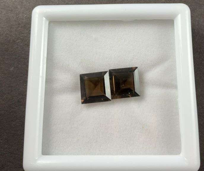 LOT 676 - Set of 2 Brazilian smoky quartz 9mm square gemstones 6.15ctw