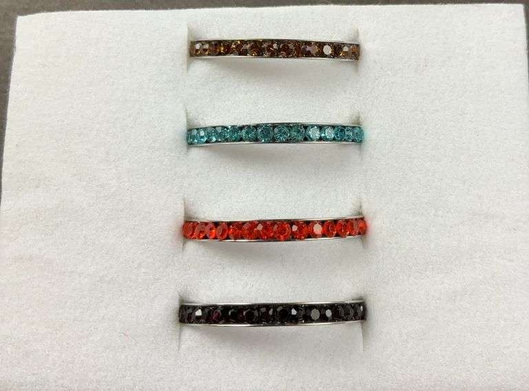 LOT 674 - Set of 4 multi color Austrian crystal stainless stackable band rings size 9