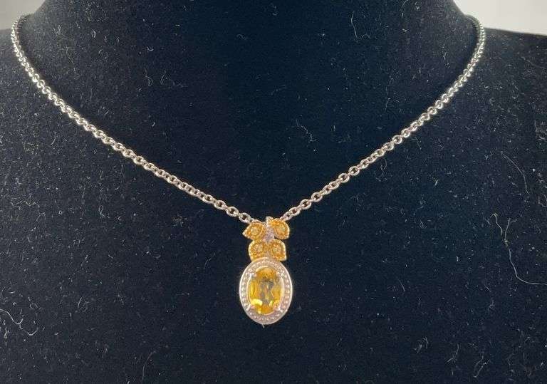 LOT 672 - Brazilian heliodor and yellow sapphire scarlet bloom rhodium coated sterling silver pendant with 20in stainless chain