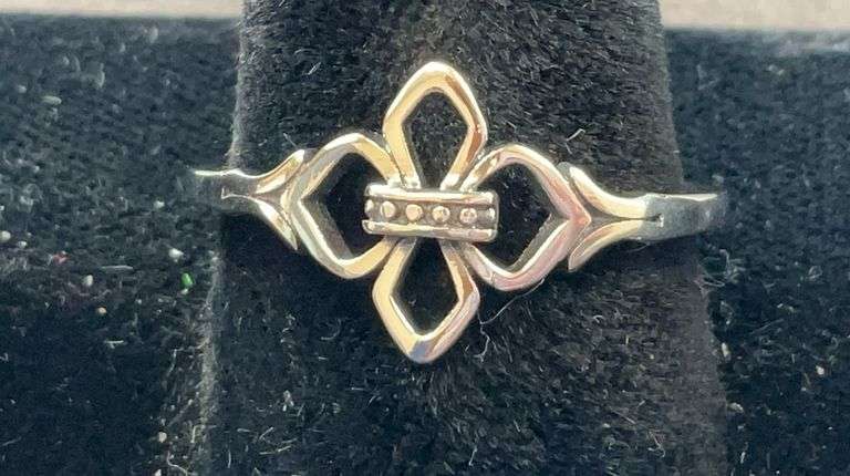 LOT 601 - Sterling silver fleur de lis ring size 10