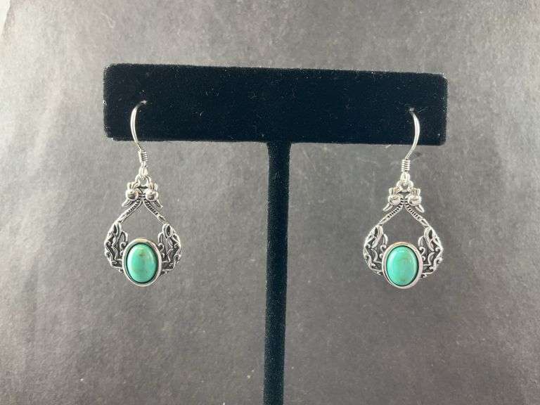 LOT 604 - Sterling silver peacock earrings