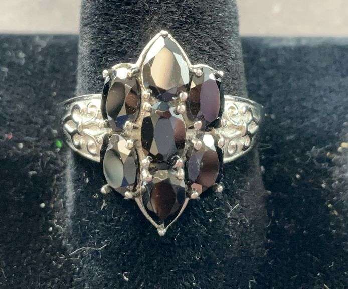 LOT 615 - Thai black spinel ring size 9 stainless steel
