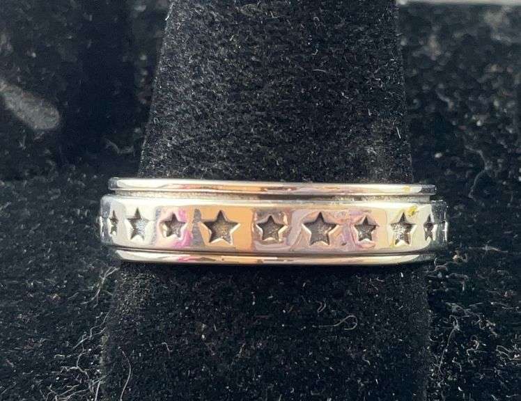 LOT 684 - Size 10 Sterling silver star design spinner ring 4.6gr