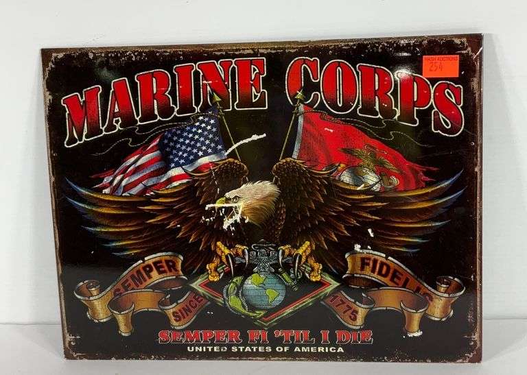 LOT 1018 - Metal Marine Corp sign, scratched as shown