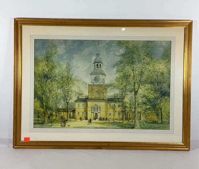 LOT 1813 - Framed and matted lithograph print, Independence Hall by J.C. Claghorn, 38x28”
