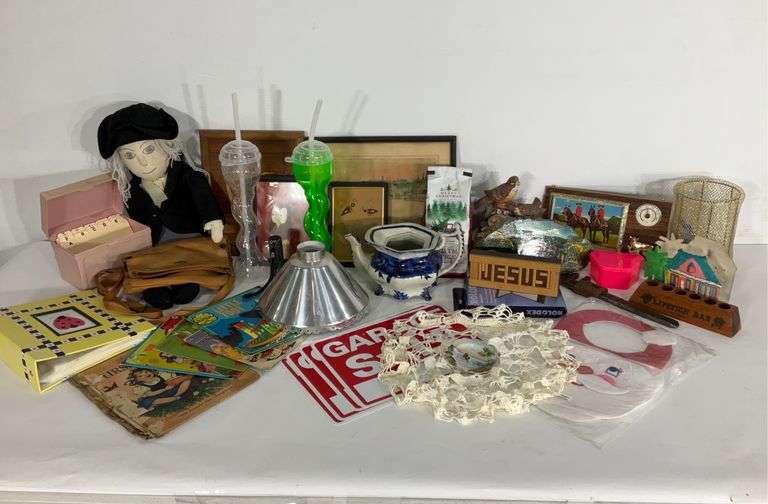 LOT 1448 - Miscellaneous household goods, knick knacks and what nots, include tote without lid