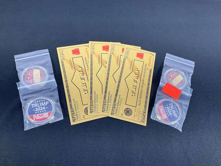 LOT 781 - Trump collectible novelty bills and coins, four “million dollar” bills and four printed collectible coins