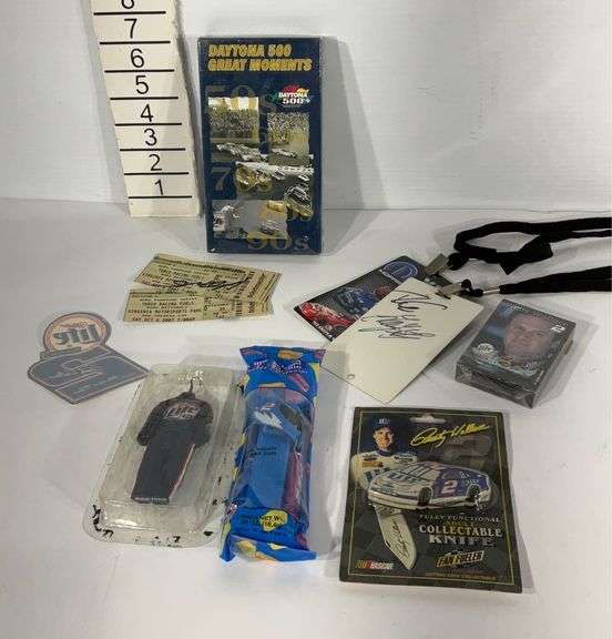 LOT 1050 - NASCAR collectibles, Rusty Wallace, tickets, lanyards and passes, video